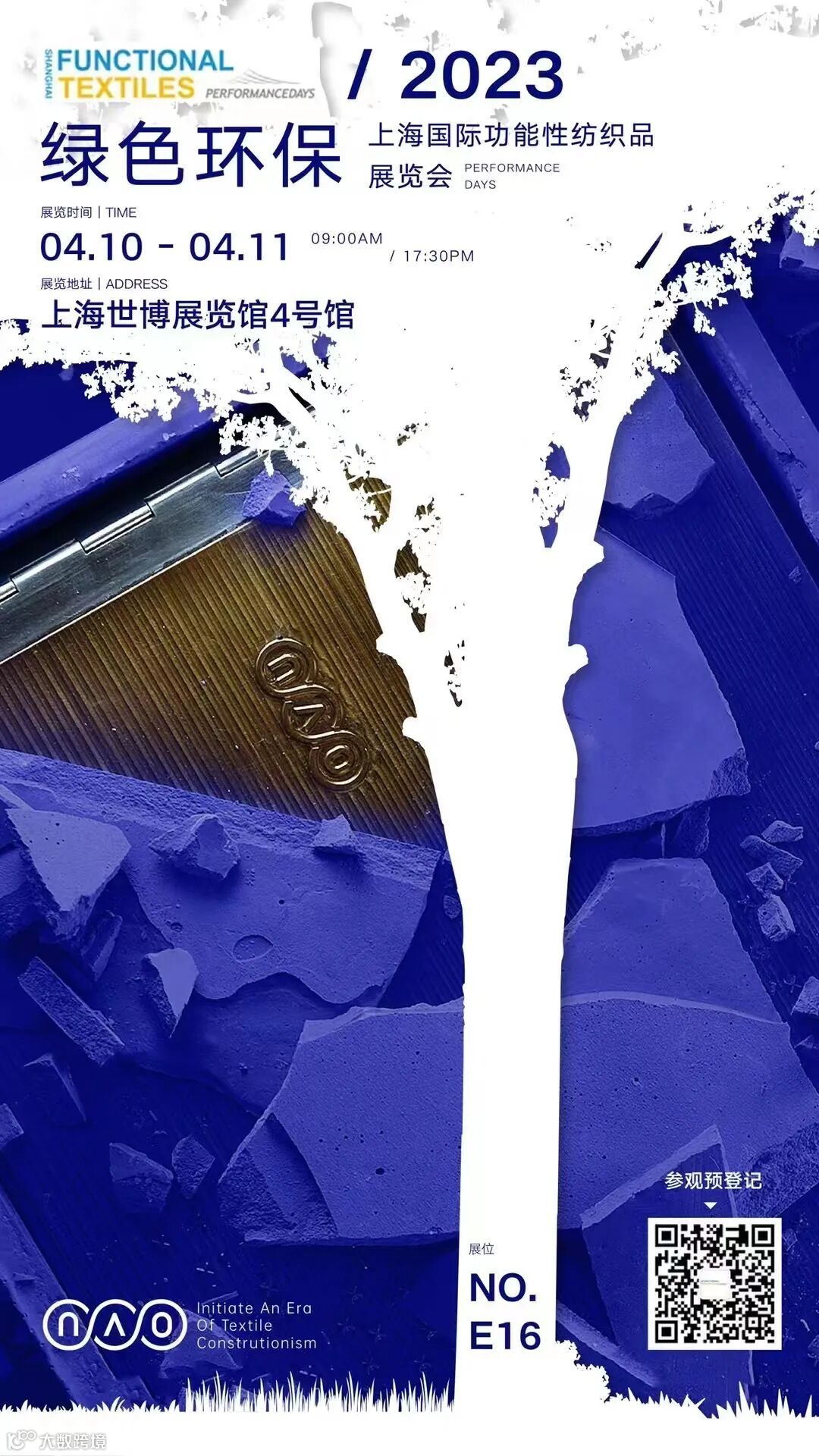 源自德国的国际顶级功能性纺织展会PERFORMANCE DAYS一直以其高端的品质和引领行业的功能性面辅料趋势发布享誉业内。FUNCTIONAL TEXTILES SHANGHAI by PERFORMANCE DAYS上海国际功能性纺织品展览会在上海世博展览馆4号馆举办,我们位于E16号展位,展会呈现国际领先的功能性纺织品趋势及资讯,帮助品牌拓宽下一季产品开发思路。