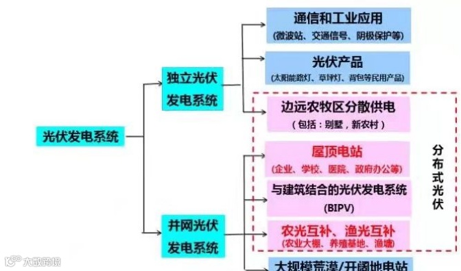 分布式光伏主要包括边远农牧区分散供电、屋顶电站、与建筑结合的光伏发电系统(BIPV)、农光互补、渔光互补这四大类。