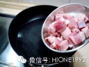 1. 先把五花肉切成三厘米见方的块,把切好的肉凉水下锅。