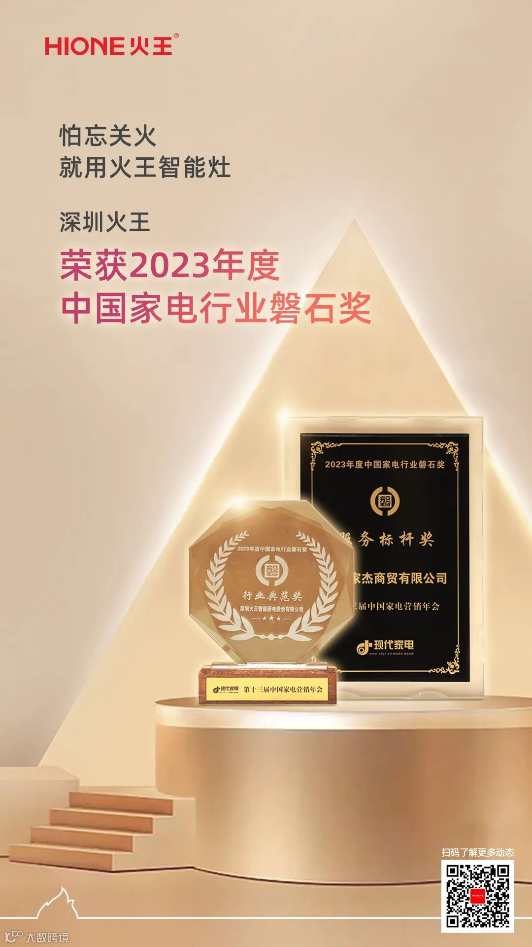 在众多优秀的品牌中,火王凭借其深厚的品牌历史底蕴、领先的创新技术、卓越的安全性能和用户体验,一举斩获中国家电行业颇具含金量的磐石奖之“行业典范奖”、“服务标杆奖”两项大奖。