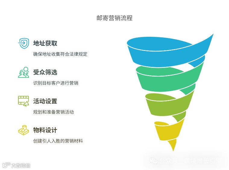 这种方法本质上是一种站外营销,利用了可以获取客户地址(来源需合规)并发送实体信件的服务。虽然来源中没有明确说明具体是哪个系统或服务商提供的功能,但其流程和细节却描绘得很清楚。