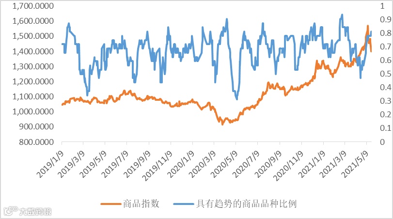 商品策略。具有趋势效应的商品上升至81.25%左右,商品指数继续回落。目前是配置CTA策略的较好时机。