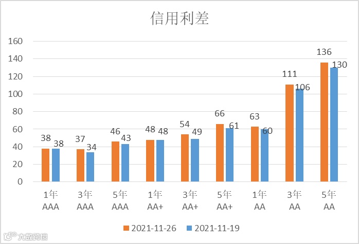 信用利差方面,各期限等级信用利差有所收敛。