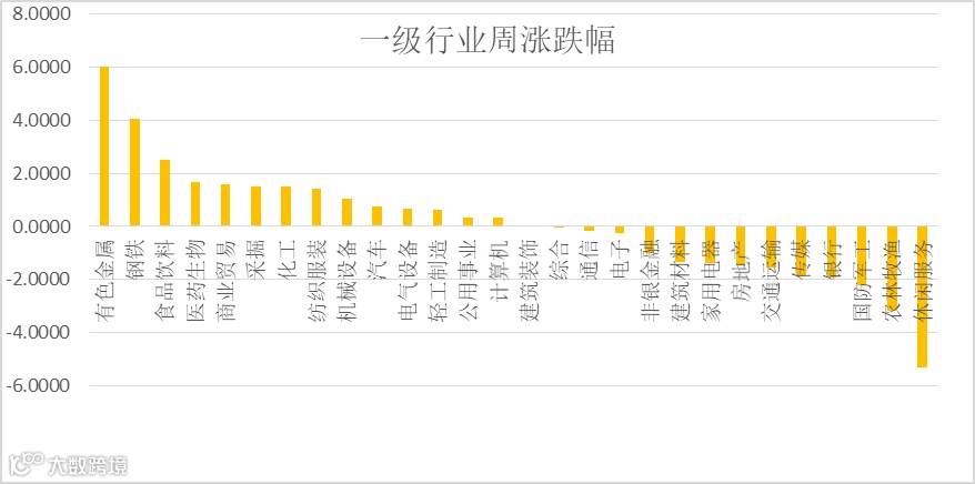 股票市场综述:上周国内股市维持窄幅震荡。沪深300下跌0.61%,中证500上涨0.70%,中证1000上涨1.76%,创业板上涨1.46%。行业分析,上周各一级行业中,有色金属、钢铁、食品饮料涨幅居前;休闲服务、农林牧渔和国防军工跌幅居前。市场交投继续突破万亿,日平均成交额1.17万亿元。
