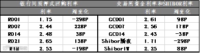 上周货币市场隔夜利率下行。R001加权收报1.75%,R007加权收报2.44%;GC001收报2.61%,GC007收报2.56%。