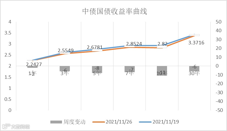 (3)美国总统拜登提名鲍威尔连任美联储主席,提名布雷纳德为美联储副主席。美国财长耶伦表示,对鲍威尔、布雷纳德的提名感到满意,将继续支持强有力的美联储。市场分析认为,鲍威尔获提名连任美联储主席,意味着美联储政策将具有连续性,在通胀持续高企以及劳动市场不断复苏的情况下,美联储加快taper的可能性有所增加。美国掉期市场定价也显示,美联储将在明年6月的会议上加息25个基点,此前预计为7月。