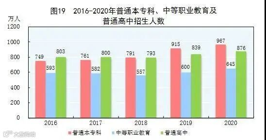 全年研究生教育招生110.7万人,在学研究生314.0万人,毕业生72.9万人。普通本专科招生967.5万人,在校生3285.3万人,毕业生797.2万人。中等职业教育[58]招生644.7万人,在校生1663.4万人,毕业生484.9万人。普通高中招生876.4万人,在校生2494.5万人,毕业生786.5万人。初中招生1632.1万人,在校生4914.1万人,毕业生1535.3万人。普通小学招生1808.1万人,在校生10725.4万人,毕业生1640.3万人。特殊教育招生14.9万人,在校生88.1万人,毕业生12.1万人。学前教育在园幼儿4818.3万人。九年义务教育巩固率为95.2%,高中阶段毛入学率为91.2%。