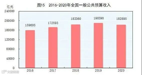 注:图中2016年至2019年数据为全国一般公共预算收入决算数,2020年为执行数。