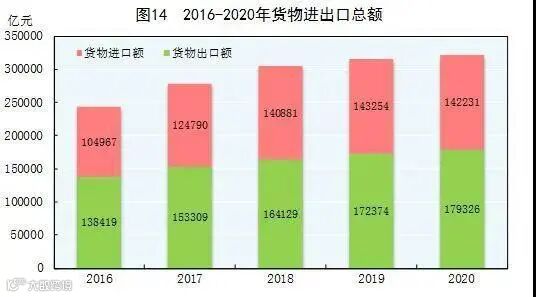全年货物进出口总额321557亿元,比上年增长1.9%。其中,出口179326亿元,增长4.0%;进口142231亿元,下降0.7%。货物进出口顺差37096亿元,比上年增加7976亿元。对“一带一路”[38]沿线国家进出口总额93696亿元,比上年增长1.0%。其中,出口54263亿元,增长3.2%;进口39433亿元,下降1.8%。