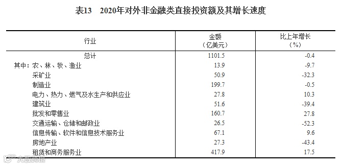全年对外非金融类直接投资额7598亿元,比上年下降0.4%,折1102亿美元,下降0.4%。其中,对“一带一路”沿线国家非金融类直接投资额178亿美元,增长18.3%。