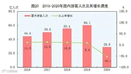 全年国内游客28.8亿人次,比上年下降52.1%。其中,城镇居民游客20.7亿人次,下降53.8%;农村居民游客8.1亿人次,下降47.0%。国内旅游收入22286亿元,下降61.1%。其中,城镇居民游客花费17967亿元,下降62.2%;农村居民游客花费4320亿元,下降55.7%。