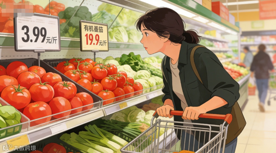 周末的超市里,你推着购物车在生鲜区徘徊,目光在两颗西红柿之间游移:左边是普通货架上的,红得均匀饱满, 3.99元 一斤;右边是有机专区的,个头稍小还有些不规则,价格牌上赫然写着 19.9元 一斤。