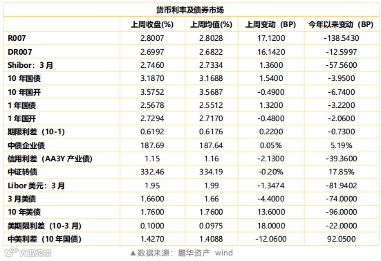 注:货币利率(R007、DR007、贴现利率、Shibor、Libor利率等)变动数据采用周均值,债券指数、债券收益率变动采用收盘价。