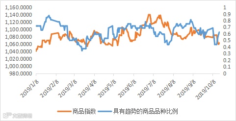 商品策略。上周商品市场大幅走弱,尤其是工业品延续跌势,部分品种创调整以来的新低。经过一段时间调整后,商品市场具有趋势的品种比例开始回升。同时农产品持续走强,对商品趋势策略有提振。不过就工业品而言,由于中外经济周期的错位以及国内较弱的库存周期,商品内部分化,长期看整体趋势性可能并不强。