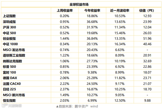 股票市场。上周A股震荡,上证指数微涨。市场风格切换,中小创表现较好,创业板、深圳成指等上涨1%左右,电子、医药生物、计算机等成长板块及食品饮料、家电等蓝筹板块涨幅居前,房地产、农林牧渔回调。MSCI宣布扩容,陆股通资金继续流入,两融余额回升,市场成交量略回落。当前A股处在大的区间震荡,呈现出结构分化、风格轮动的特点。