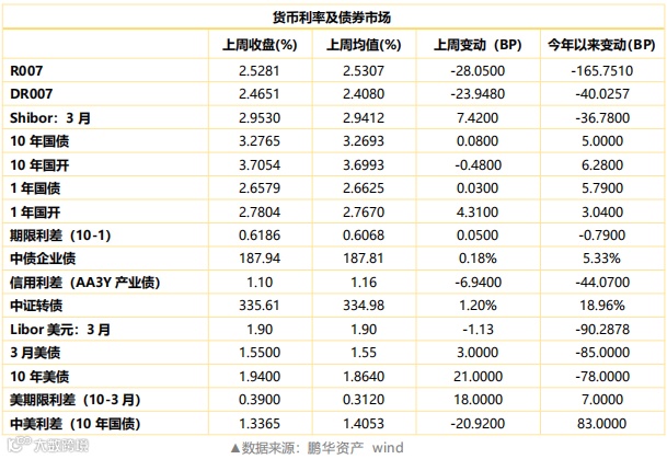 注:货币利率(R007、DR007、Shibor、Libor利率等)变动数据采用周均值,债券指数、债券收益率变动采用收盘价。