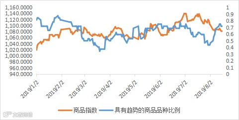 商品策略。上周商品市场弱势震荡。黑色、能化、有色、农产品等主要品种均小幅震荡。市场总体波动率下降,成交持仓量回落。全周来看市场中处于趋势行情的品种比例较前周略有回落。市场情绪短期受贸易战影响较大,中长期走势不明朗。由于中外经济周期的错位以及国内较弱的库存周期,商品内部分化,长期看整体趋势性可能并不强。