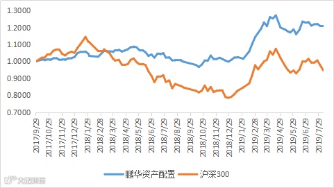 根据宏观判断,利用平台上丰富的产品线构建了模拟组合,供投资者参考。当前组合比例为:固收产品10%,中证500指数增强FOF60%,黄金ETF30%。本组合开始于2017年9月29日,截至2019年8月9日(滞后一周,配置比例亦为该周),组合单位净值为1.211,期间最大亏损3%。