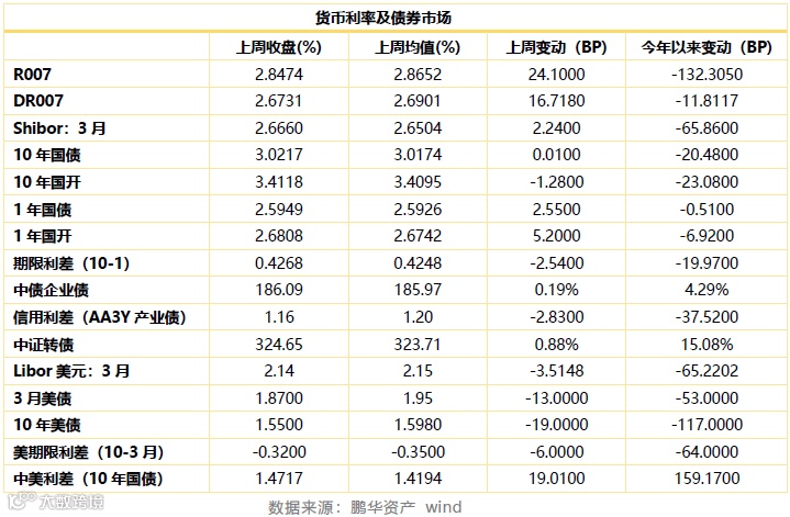注:货币利率(R007、DR007、Shibor、Libor利率等)变动数据采用周均值,债券指数、债券收益率变动采用收盘价。