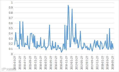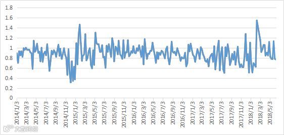 上周集中度指标继续降至0.76,显示市场个股表现较差,权重指数跌幅较小的格局。