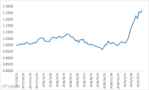 ▲当前组合比例为:固收产品10%,中证500指数增强FOF60%,银行ETF10%,黄金ETF20%。本组合开始于2017年9月29日,截至2019年4月19日(滞后一周,配置比例亦为该周),组合单位净值为1.271,期间最大亏损3%。