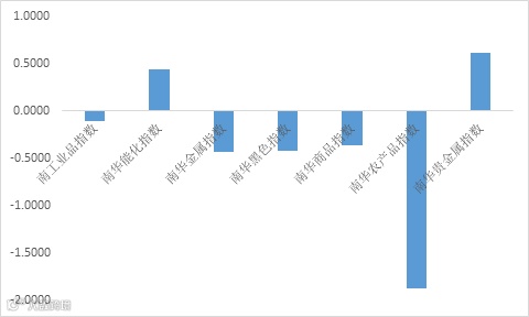 上周美元继续走强,原油、铜等大宗商品调整。国内商品调整,南华商品指数下跌0.37%。工业品小幅波动,黑色及金属品种小幅下跌,能化品种小幅上涨,南华工业品指数微跌。农产品大幅调整,白糖、油粕等主要品种大跌,南华农产品指数下跌1.87%。国内贵金属指数上涨,南华贵金属指数上涨0.62%。