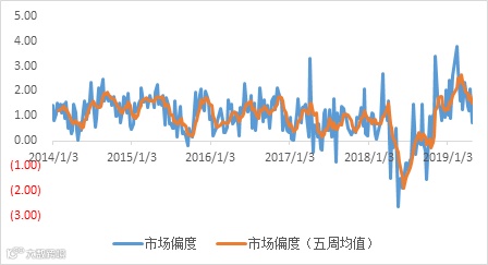 上周期货平均贴水率仍处于较高区间,但继续回落。