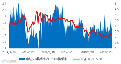 上周市场换手率继续在高位,以中证500为代表的成长板块换手率相对以沪深300为代表的蓝筹价值板块略有回落。