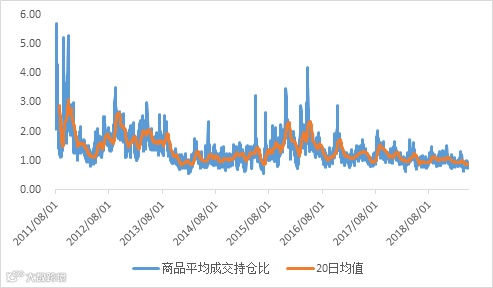 从全市场成交及持仓情况来看,期货市场成交持仓比有所下降,市场成交量略有萎缩。
