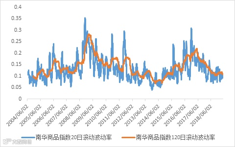 上周南华商品指数波动率回落,市场波动率仍处在低位。