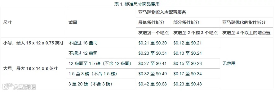卖家选择不分仓,还是参考原来的入库配置,卖家则需要向亚马逊缴纳入库配置费,根据每件商品的尺寸和重量,入库配置费在$0.12到$6不等,这可能直接影响卖家1%~2%利润。