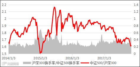 市场情绪转强,期指贴水率有所下降。IC远季合约年化贴水率降到5.4%附近。