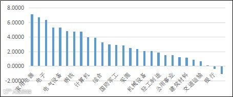 从行业板块来看,除建筑装饰、银行外申万一级行业皆上涨,家电、食品饮料、等白马板块及通信、电子等成长板块大涨。