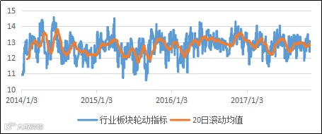 从轮动上来看,上周轮动指标回落,市场板块涨跌分化持续。