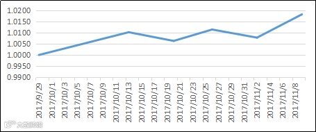 当下非标理财产品收益率较高,年化收益率超过7%,性价比突出,在组合中50%资产配置该类产品(鹏华固收系列产品)。权益类资产结构机会较大,下半年市场活跃,阿尔法及贝塔机会都存在,将30%资产配置中证500指数增强FOF,其余20%资产投向黄金ETF、现金类资产。本组合开始于2017年9月29日,截止2017年10月20日,组合单位净值为1.0183。