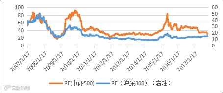 上周市场估值略有抬升。中证500升至30.5,沪深300升至14.3。从历史来看,当前市场整体估值处在平均水平附近。中证500估值水平处在均值偏下位置。