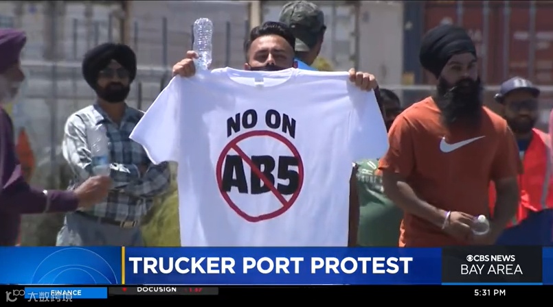 周一早上八点,加州奥克兰港,大约有400个独立卡车司机设法关闭了奥克兰港3个码头的卡车运输,以此抗议AB5法案。