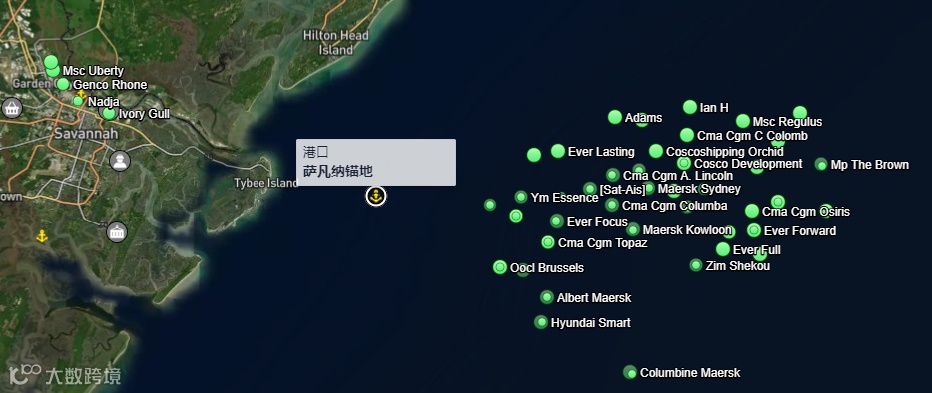 7月19日 萨瓦纳港锚地集装箱船分布图