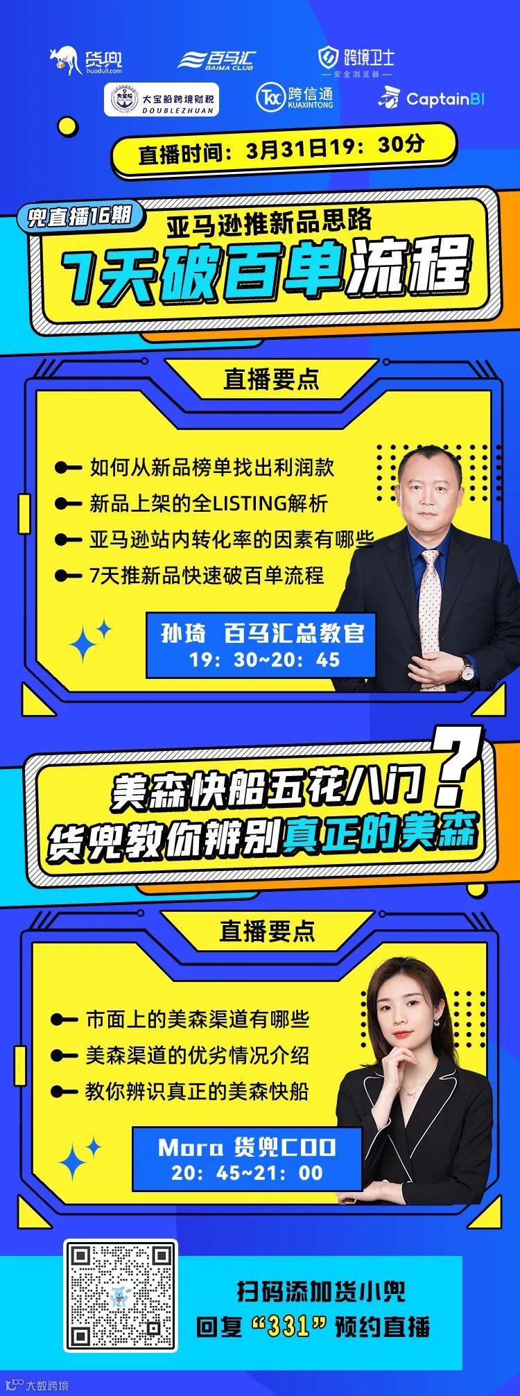 本次货兜牵手百马汇、跨境卫士安全浏览器、大宝船财税、跨信通和船长BI推出品牌联合直播。