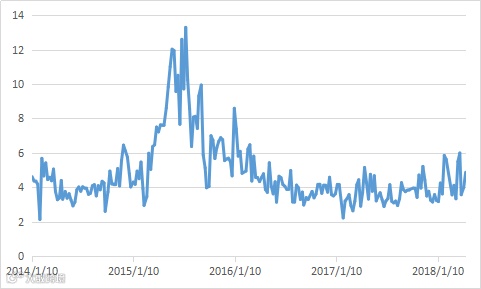 上周股指期货合约贴水率相对稳定。IC远季合约年化贴水率约为8%。