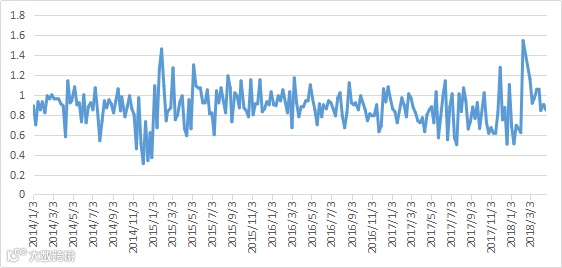 图4 沪深300/中证500 比值