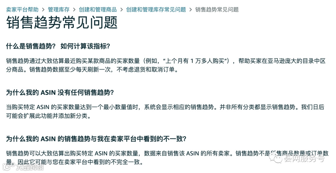 我们再接着看一下亚马逊官方对于销售趋势算法的说明,这里我们为大家总结几点: