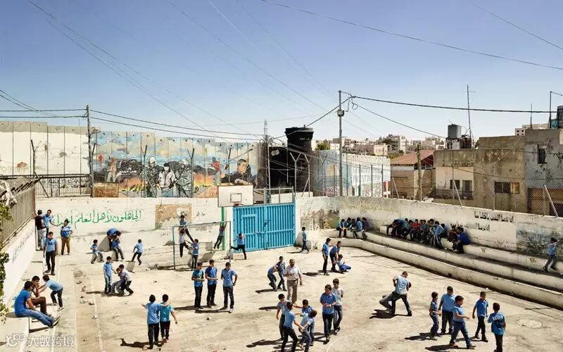 约旦河西岸伯利恒市,阿伊达男子学校(Aida Boys School)的操场