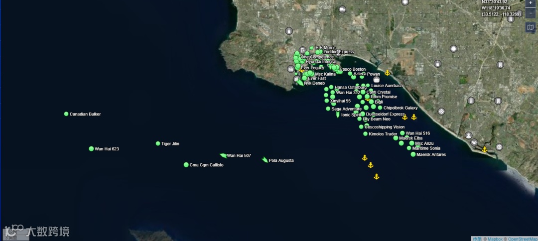 12月2日 洛杉矶/长滩港外的集装箱船分布情况