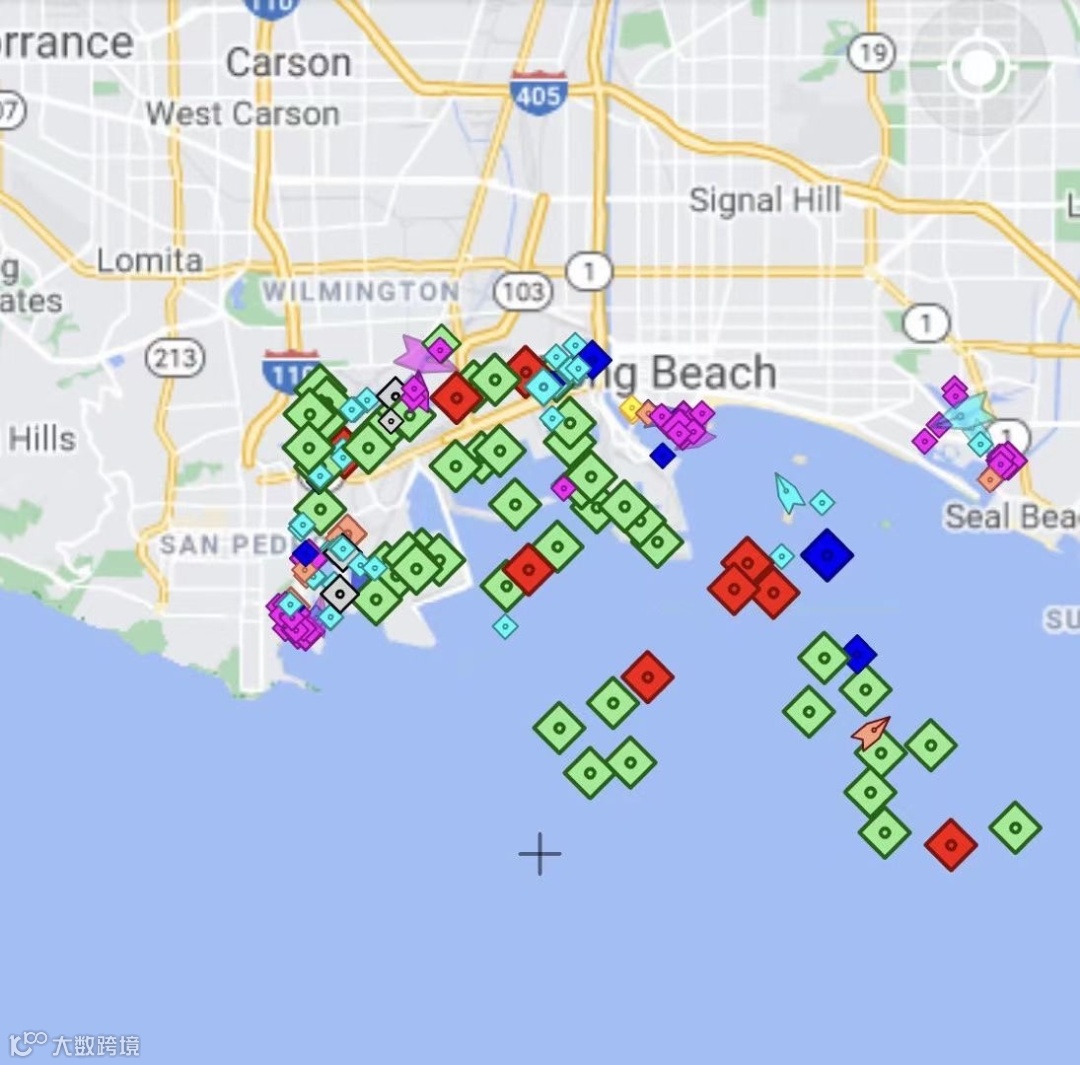 美国LA/长滩旺季堵塞严重,约有10000~15000个集装箱滞港,美国末端UPS涨价。不止如此,海面上还有非常多的货船待停靠。