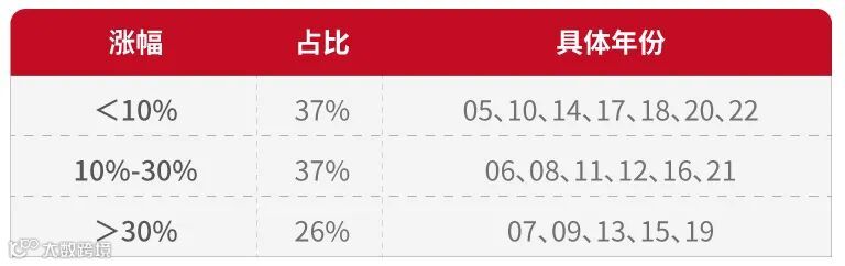回顾2005年以来A股跨年表现发现,大多数年份出现了一定程度的跨年行情,差异主要在于启动时间和涨幅: