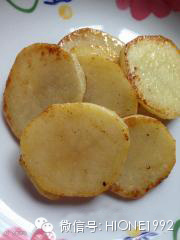 6. 平底锅中热油,放入土豆片煎至两面金黄,土豆发软