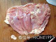2. 用叉子在鸡皮上叉一些小洞防止煎时回缩