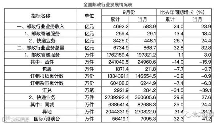 国家邮政局公布快递业9月运行大数据&红黑榜