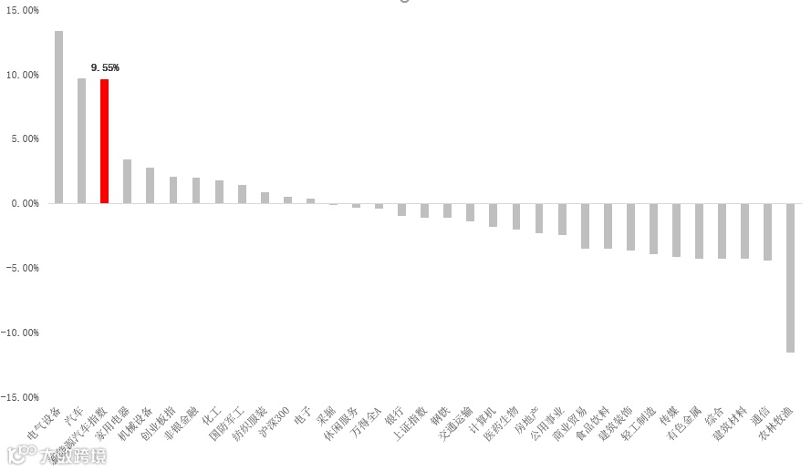 申万一级行业指数、A股主要宽基指数表现